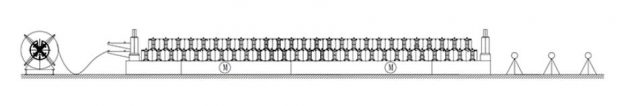 5T Hydraulic Decoiler-→Manual Pre-Cutter Device- + Feeding Guide Device-→Roll Forming System- >Hydraulic Post Cutter Device-→AUTO Exit Rack
