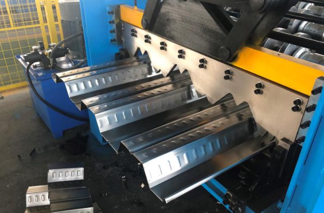Metal Floor Deck Machine is for producing metal floor decking as per drawings. The thickness is 0.8-1.5mm as usual Zhongtuo metal deck roll forming machine is composed by 10 Ton Hydraulic Uncoiler with Coil Car, Roll Forming Machine Mill 2 parts for easy loading), Hydraulic shearing system, hydraulic Station ,controlled Box ( All electric elements conform to CE standard.)