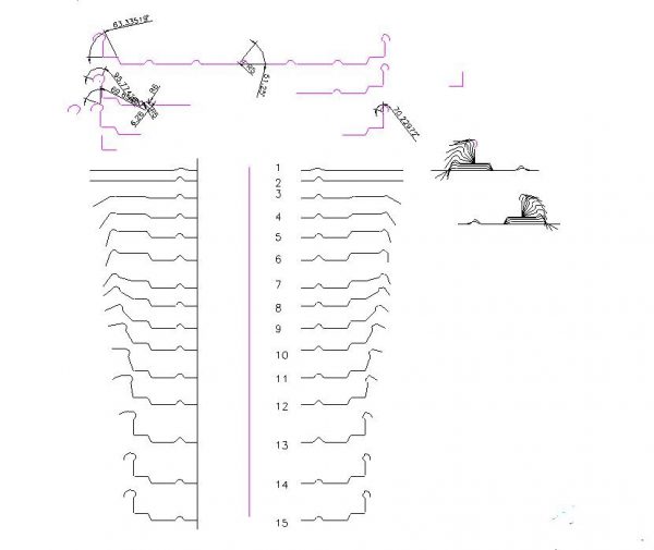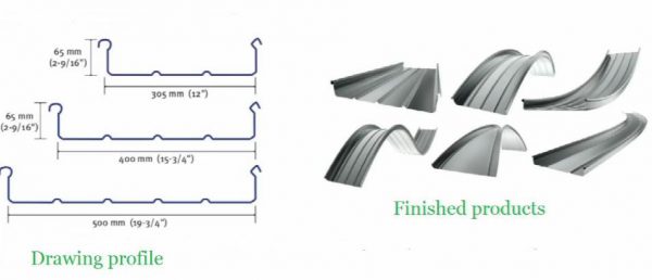 Standing Seam Roofing Sheet Machine is designed to make the standing seam in batch fully automatic by the rolling forming principle. This part we specially take the Bemo standing seam for example, Bemo type is designed by American company and now it is used all over the world as its  good design and special function. The material could be like aluminium, steel,copper,stainless steel and titanium zinc etc, here I show the drawing profile for your reference: