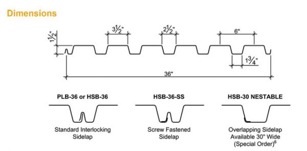 • Types B, B-Dek, BV, BV-Dek, BA and BA-Dek available with nested side laps. Types BI, BIV and BIA available with interlocking side laps